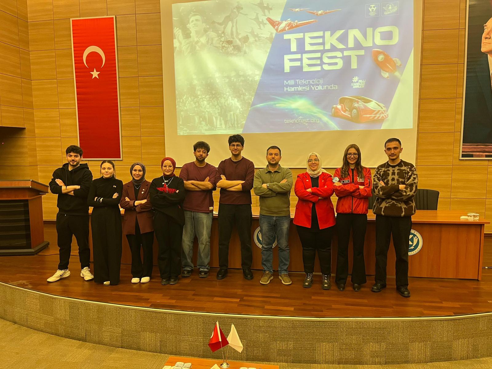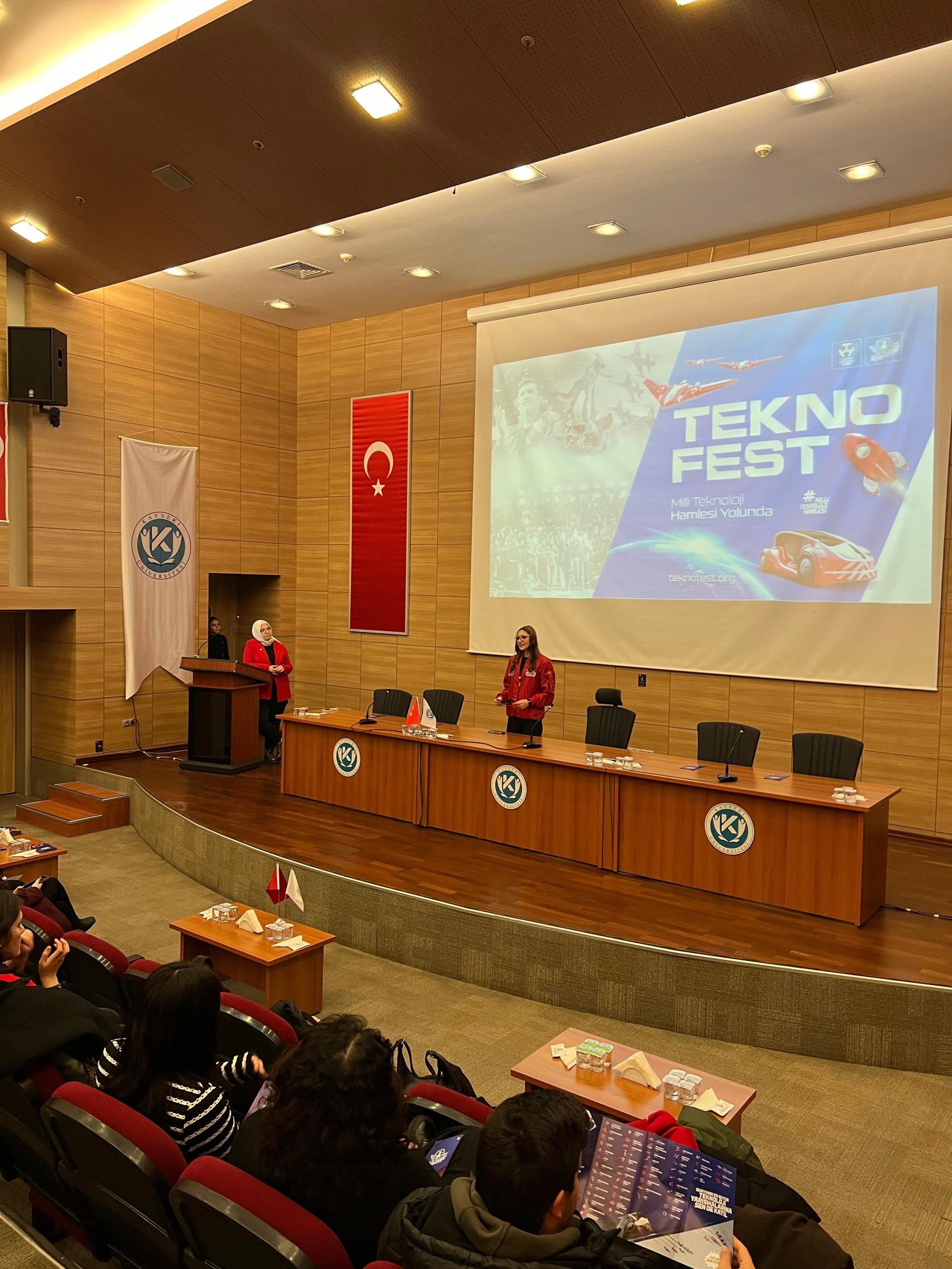 The TEKNOFEST information presentation for Kayseri University students was held under the coordination of KAYÜ Teknofest Club and Competitions Coordinator Lecturer Melih Erşen, conveying Teknofest's vision, competition culture, project development processes, and the importance of teamwork to the students. It was emphasized that TEKNOFEST is a strong starting point for young people in building the future.